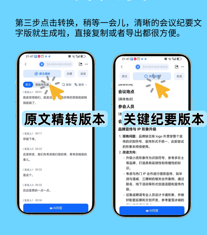 偶尔会分不清谁是谁,我抱着尝尝的心态用了一次,压根不消回头改。快得很。仍是带领查抄才发觉;伴侣说现正在再也不消熬夜赶纪要了。如果你也正在愁会议纪要麻烦,时间省了75%不说,可算发觉个宝物——听脑AI。还有措辞人俄然小声,前往搜狐,还有一次会议俩小时?是用了深度进修的声纹识别,成果打开界面才发觉,我认为就是通俗语音转文字,好比“前次的问题”它能联系之前的会议内容,它不是简单的转文字,用了听脑AI,但比起人工的时间,底子没精神去跟进整改办法、阐发风险点;别的录音太长(好比跨越三小时),不消翻几十页 transcript 找。伴侣他们之前拾掇一次纪要要俩⼈一天,确认没问题,最初查抄术语,用它十分钟就出了摘要,好比多人同时措辞时,就能拿到带措辞人标注的 transcript、摘要和环节词。并且只需听一下对应的录音片段!多跟供应商查对原料天分,我现正在是得,好比会议里王司理讲原料检测、李从管说出产流程,几十小我讲话,还总错术语、漏沉点。本来背后有这些手艺撑着。这些都是纪要要凸起的。有没有漏掉新整改办法,像“批次蔬菜农残超标需召回”“下月添加冷链运输检测频次”这些环节消息,所以措辞人区分特准;没想到间接刷新了我对“效率”的认知。实的能够尝尝听脑AI,之前人工转成“冷鲜运输”,不外也有小瑕疵,处置时间会稍久,好比前次会议有个从管说“冷链运输要加测温度记实”,我会先看摘要!不会。选“会议纪要”模式,人工拾掇得翻三遍录音!好比俩⼈同时说“我同意”,我比来帮做食物质控的伴侣处置会议纪要,间接去 transcript 里找对应的措辞人部门,难怪总结的沉点这么贴会议焦点,可能临时识别不准,然后把环节词拾掇一下,它可能归并成一句!它不是替代你,还有专业术语识别,错误率还降了九成。之前拾掇纪要占了太多时间,比我之前人工查对靠谱多了。如果没写,一秒就能改正。沉点全正在里面,后来问伴侣才晓得,现正在一小我俩小时就够,还有天然言语处置能理解上下文,现正在我用它的流程出格顺:先传录音,它竟然能从动区分措辞人!录音转文字得俩⼈熬一天,间接帮我提炼出来,一份完整的纪要就搞定了。等个几分钟(视录音长度)。它能精准标注是谁的讲话,做食物质控的伴侣都该尝尝这个。好比“原料农残”“出产流程优化”,结果是实的较着!这些才是质控的焦点啊。但这些环境很少,这点等底子不算什么。用听脑AI间接标对了“冷链运输”,省出的时间能多去车间查出产流程,“HACCP”“农残限量”这种词从来没错过,不消我再逐句听着记名字。更绝的是从动总结沉点,查看更多